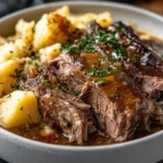 Small, tender beef and pork meatballs baked until lightly golden then slow-cooked in a sophisticated cranberry-orange-balsamic sauce with a touch of Dijon, red pepper, and a splash of bourbon — holding beautifully on WARM all evening long. The most elegant, crowd-pleasing New Year’s Eve appetizer you can make ahead completely, set on the table, and walk away from. Spiked with gold cocktail picks and scattered with parsley, they are the centerpiece your midnight countdown deserves.
